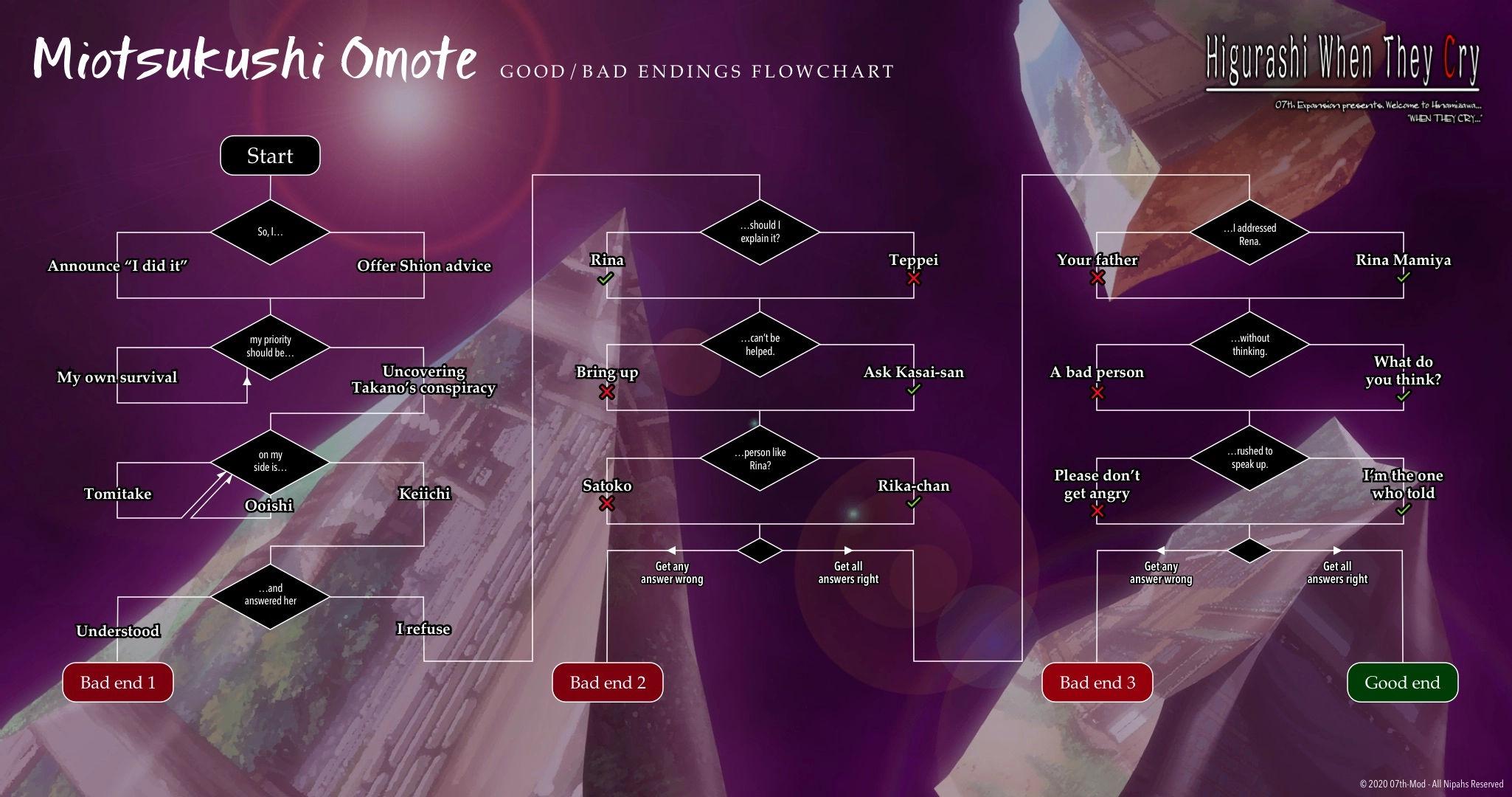 The Console Arcs are a set of exclusive chapters released for the console version of the game. These chapters were not written by Ryukishi, the game creator, but offer a new perspective into the events of the series and some stories that are completely unrelated to the main plot. There is no official release of the Console Arcs for PC, our mod is the only way to get it.