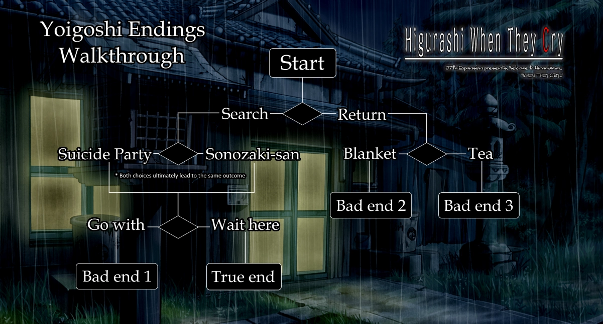 Here's a walkthrough for anyone who wants to know which choices in Yoigoshi lead to which endings. And here's a walkthrough for Miotsukushi Omote.